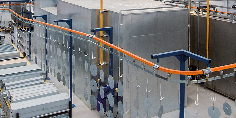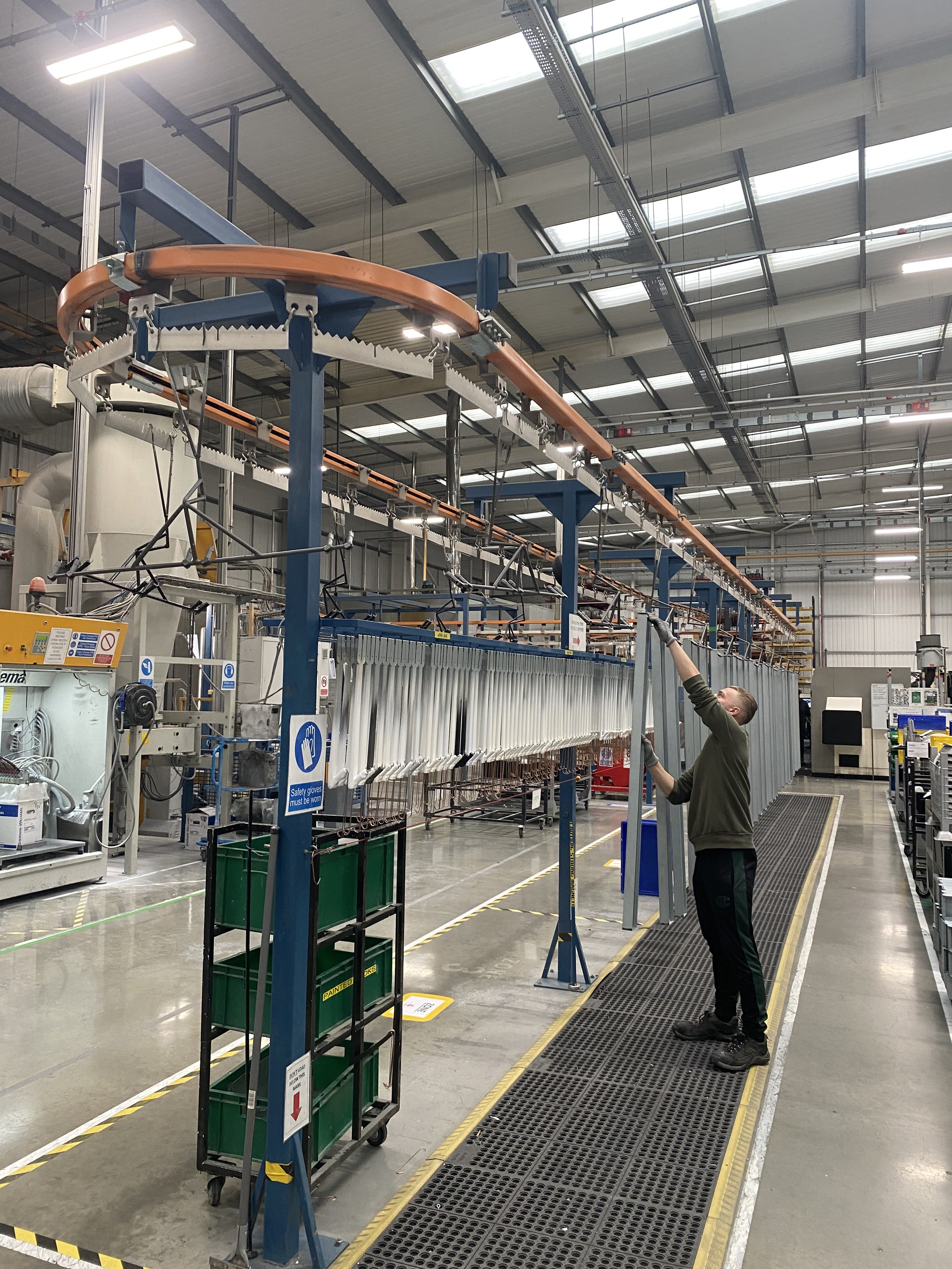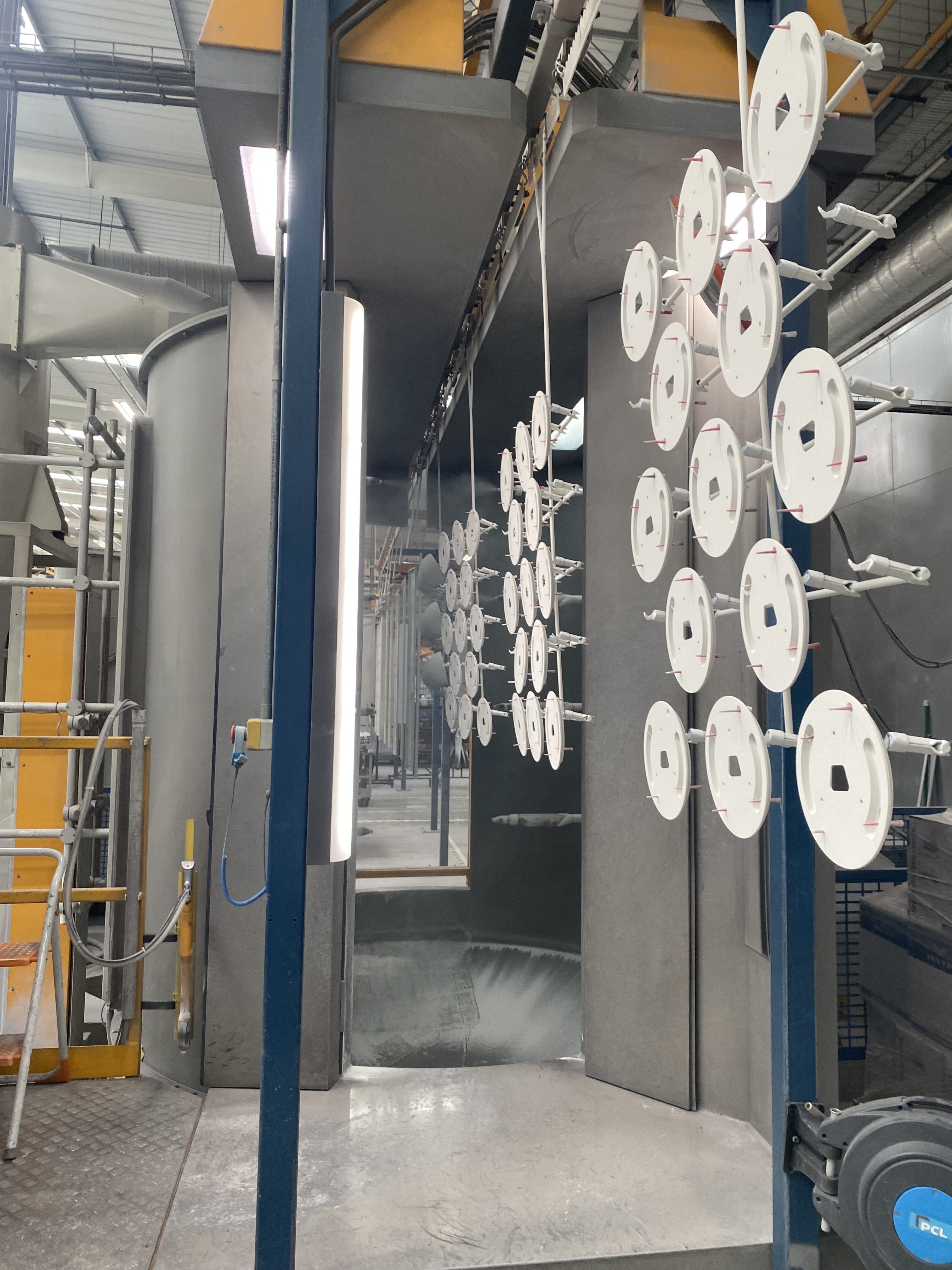 First we clean our unpainted product bodies thoroughly using an etching low foam heavy duty cleaner, followed by a two-stage demineralised water rinse with a Polymer coating to finish. This removes any trace of dirt or residue from the bare metal and provides a protective coating for the subsequent finishing.