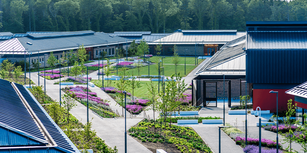 Die Außenbeleuchtung ist den Elementen vollständig ausgesetzt, sodass Leuchten mit hoher IP-Schutzklasse unerlässlich sind. Außenbereiche von Kliniken benötigen eine robuste und ebenso wartungsarme Beleuchtung.