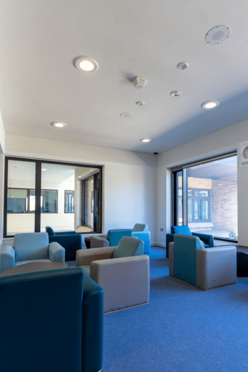 Korridore sind zentraler Bestandteil einer sicheren Gesundheitseinrichtung und verbinden Stationszimmer, Wohnbereiche und Therapieräume. Diese Flure und Aufenthaltsbereiche sorgen für Bewegung von einem Ort zum anderen und dienen als Orientierungspunkte. Die Beleuchtung muss diese verschiedenen Anforderungen sicher erfüllen.