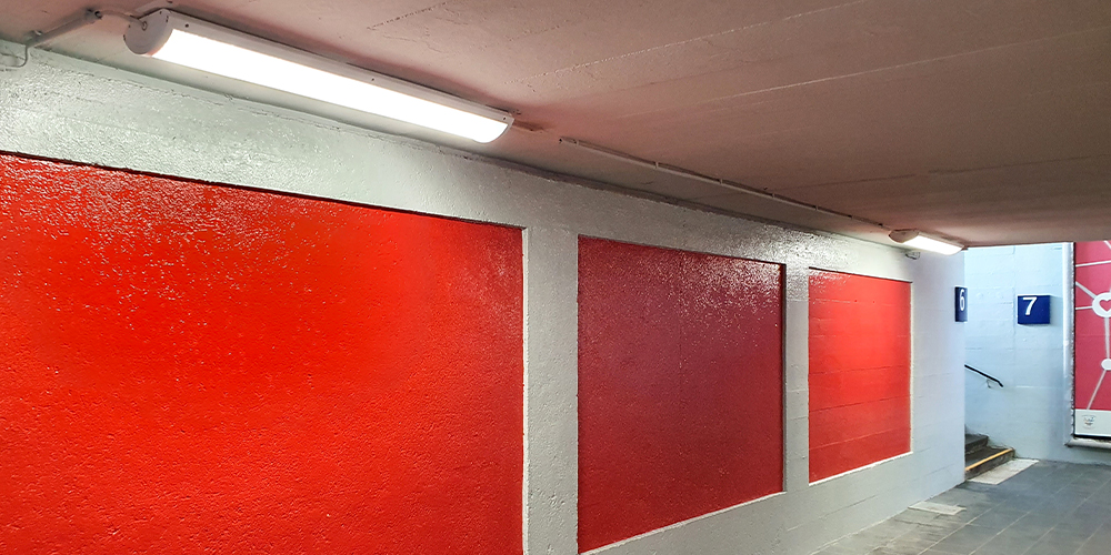 Die Linearleuchte Mission SKII DB hat die Schutzart IP65, hält einem Aufprall von bis zu 150 Joule stand (IK16). Außerdem testeten wir sie auf eine Umgebungstemperatur von +45° C. Sie ist für eine Montage an der Decke, am Gesims sowie an einer Aufhängung geeignet. Es stehen eine Reihe von Optionen zur Verfügung, darunter ein Medienträgersystem für Lautsprecher, Dummy-Gehäuse, Sensoren und ebenso Videoüberwachung.