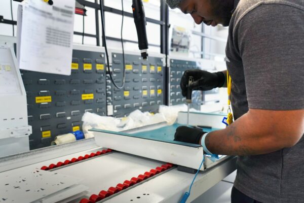 Summer 2023 saw the start of a brand new endeavour for Designplan. Our LED Gear Tray Assembly line is situated at HMP Fosse Way (formerly HMP Glen Parva). The assembly line, managed by our colleagues Magda Rzucidlo and Matt Ewen, will enable residents to learn a new trade prior to release and help them reintegrate into society with real transferable skills and required knowledge of a working assembly line.