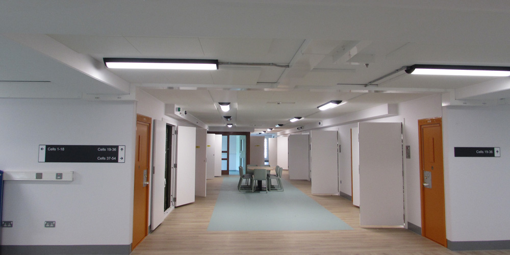 Secure healthcare applications include corridors and circulation spaces. Custodial applications include showers, association areas, educational environments, police stations and law courts. Transport applications include subways. Community and public applications include subways and underpasses.
