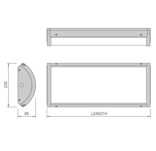 Housing: Extruded aluminium body and die cast aluminium end caps.