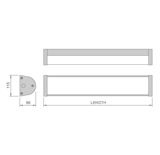 Housing: Extruded aluminium body (70% recycled content), with die cast end caps (93% recycled content) secured with tamperproof screws.