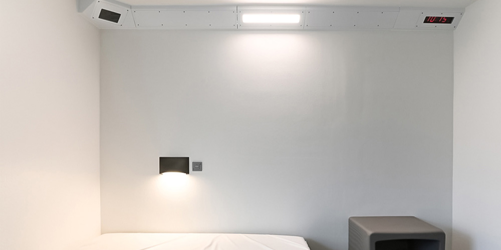 The ligature resistant design helps prevent self-harming. Complete with 3 light level switchable circuits for cleaning, daytime operation and night light.