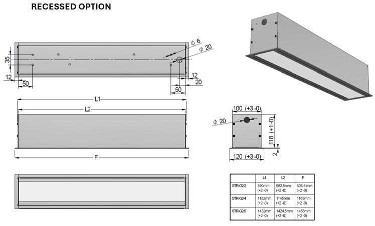 Stromma can be surface mounted, suspended, or recessed with a flange. Integral through wire trunking for up to 3 lighting circuits, providing long continuous runs, remote central battery capability and enhanced circuit diversity.