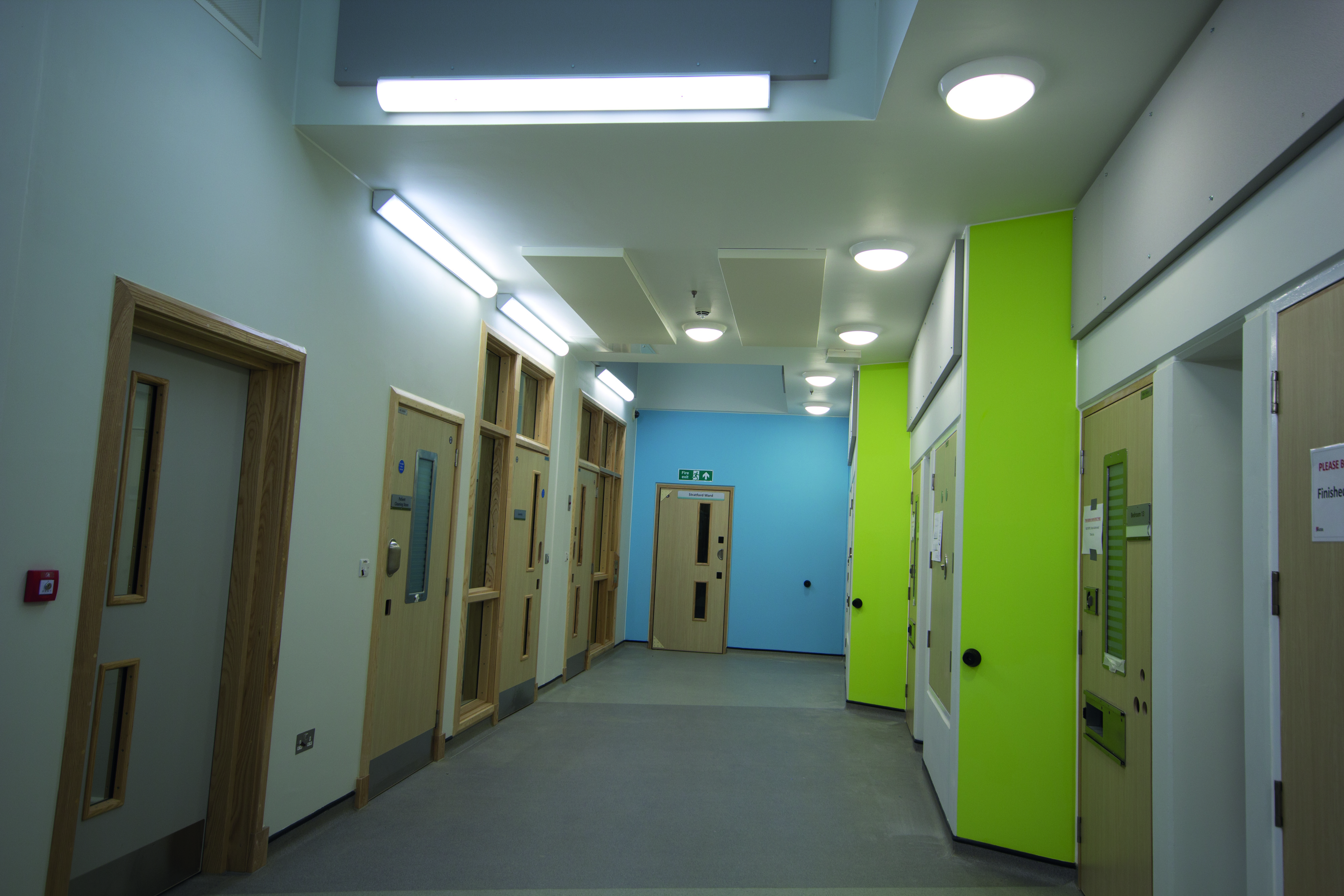 The main aim of Broadmoor Hospital Redevelopment (BHR) is to modernise living conditions, upgrade service user facilities and improve working conditions. BHR has been designed to promote recovery, dignity and comfort. With their non-institutional, contemporary appearance, 1500 Basilica luminaires were specified in the corridor, ward day space and reception areas. The contemporary lighting helps aid the treatment of mental illness in a modern forward thinking environment.