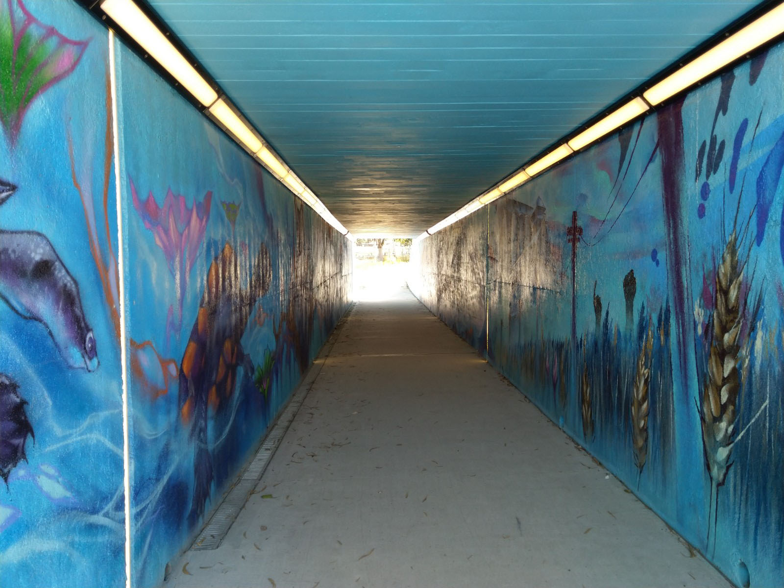 This project was part of a new thoroughfare leading to Metro Trains Sunshine Station. It was brought to life with vibrant street art by a local graffiti artist whose work adorned the existing walls of Hampshire Road underpass. Bespoke Tuscan 89 Angled luminaires were installed end-to-end for ease of installation. They provide excellent light uniformity within the space, therefore making it a welcoming and safe environment for pedestrians. Another requirement was that glare from the lighting was controlled so as not to negatively affect the graffiti artwork.