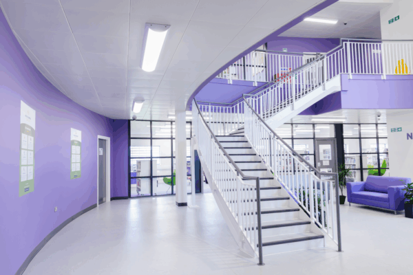With a limited amount of time spent outside, natural light inside helps support human health and aids mental and visual stimulation. The education block is naturally bright, with daylight sensors used to control the level of artificial light. The luminaires remain unlit when natural light levels are adequate, also helping reduce energy and running costs.